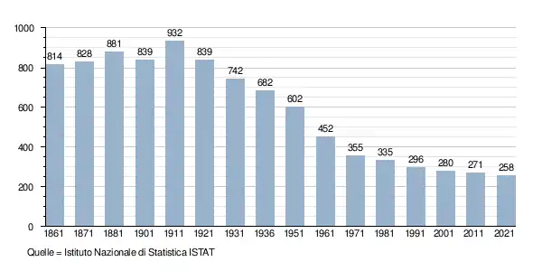 - ↑ Bilancio demografico e popolazione residente per sesso al 31 dicembre 2024. ISTAT. (Bevölkerungsstatistiken des Istituto Nazionale di Statistica, Stand 31. Dezember 2024).