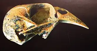Der Holotypus ist ein nahezu vollständiger Schädel mit beiden Flügelbeinen aber fehlendem Unterkiefer, Os quadratum und Gaumenbeinfortsatz. Die Paratypen umfassen das proximale Fragment eines rechten Oberarmknochens, das distale Fragment eines rechten Oberarmknochens mit einem hervorstehenden, zersplitterten Gelenkknorren, eine linke Ulna ohne Epiphysenfuge, eine fast vollständige rechte Ulna mit fehlendem Ellenbogenhöcker sowie einen vollständigen linken Carpometacarpus. Die Schädellänge beträgt 34,89 mm, die Schädelbreite 17,47 mm und die Schädelhöhe 14,31 mm. Die Oberkieferlänge beträgt 19,10 mm, die Oberkieferbreite 9,67 und die Oberkieferhöhe 6,71 mm. Der Abstand zwischen den Augenhöhlen beträgt 6,11 mm. Die Länge des Carpometacarpus beträgt 11,69 mm.