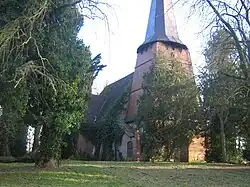 Die Pfarrkirche steht an der Westseite des Dorfs, inmitten des zum Teil von Feldsteinmauern umgebenen alten Friedhofs. Ein Pfarrer in Tribsow wurde erstmals 1443 urkundlich erwähnt.[8] Auf einem Ziegel des Unterbaus des Kirchturms befindet sich die Jahreszahl 1466, möglicherweise das Jahr der Grundsteinlegung. 1544 erfolgte der Anbau eines gewölbten Altarraums. Im Jahr 1594 werden zwei Glocken und Baufälligkeit von Kirchenschiff und Turm erwähnt. 1596 erfolgte die Wiederherstellung von beiden mit neuem, verbrettertem Eichenfachwerk-Oberbau des Turms auf altem Ziegelunterbau. 1690 werden an der Längsseite des Kirchenschiffs zwei Patronatsstände angebaut. Im Jahr 1897 wurde die Kirche so durchgreifend erneuert, dass nur Turm und Umfassungsmauern stehen blieben. 1937 erfolgte die Ausmalung des Innenraums.[8]