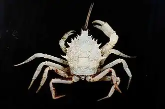 Die Trichopeltariidae sind eine Familie der Krabben und einzige Familie der Trichopeltarioidea.[1] Der Name ist vom Namen der Typgattung Trichopeltarion abgeleitet, dieser wiederum von altgriechisch trix ‚Haar‘ und peltari, Verkleinerungsform von pelte, ‚kleines Schild‘.[2]