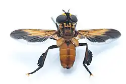 - ↑ a b c d e f Rodrigo Dios, Joachim Ziegler, Theo Zeegers: The American genus Trichopoda (Diptera: Tachinidae) in Europe - Decades of a misidentified invasive species. In: Contributions to Entomology 71 (2). Dezember 2021, S. 221–225, abgerufen am 15. Juli 2024 (englisch).