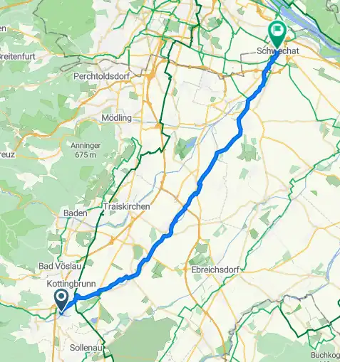Er beginnt im Südosten in Wien/Lanzendorf und verläuft durch Himberg – Achau – Münchendorf – Trumau – Oberwaltersdorf – Tattendorf – Teesdorf – Günselsdorf – Schönau an der Triesting. Es besteht in Schönau an der Triesting Anschluss zum EuroVelo 9 (Thermenradweg) in Richtung Wien und Wiener Neustadt.