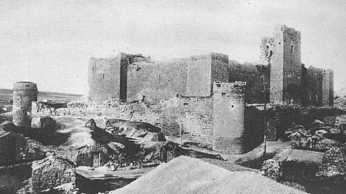 - Die Burg (castillo) entstand im 14./15. Jahrhundert und gehörte den Adelsfamilien der Robles und der Guevara; deren Wappen sowie die Jahreszahl 1453 sind über dem Portal abgebracht. Der Bergfried (torre del homenaje) ist in der inneren Befestigungsring integriert. Die Burg wurde von den Bürgern des Ortes im Jahr 1521 teilweise zerstört.[6][7]