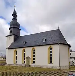 Die evangelische Trinitatiskirche steht im Ortsteil Frössen der Einheitsgemeinde Gefell im Saale-Orla-Kreis in Thüringen.