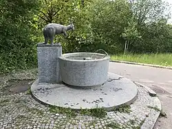 Markwalder hat nicht nur den Kängurubrunnen mit einer Tierfigur geschmückt, sondern beispielsweise auch den Trinkbrunnen am Albisriederplatz. Dort dient ein Hund als Wasserspeier.