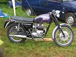Im Zweiten Weltkrieg wurde das Werk in Coventry in der Priory Street beim Coventry Blitz am 14. November 1940 von der deutschen Luftwaffe völlig zerstört. In Meriden (West Midlands) vor den Toren Coventrys wurde ein neues Werk aufgebaut, von dort verließen bis zum Kriegsende 49.700 Motorräder die Fertigungsstätte, die meisten für das Militär. Die Produktion ziviler Maschinen wurde 1946 wieder aufgenommen. Triumph konzentrierte sich auf drei Modelle: die Triumph Tiger (T100), die Triumph Speed Twin (5T) mit 498-cm³-Motor sowie die Triumph Touring (3T) mit 349-cm³-Motor. Alle drei hatten einen Zweizylindermotor mit hängenden Ventilen. Die Tiger hatte wegen eines höheren Verdichtungsverhältnises von 7,8 : 1 etwas mehr Leistung als die Speed Twin, war besser ausgestattet und deshalb etwas schwerer. Mit ihr gewann Ernie Lyons 1946 den Manx Grand Prix.[6] Neu an allen drei Modellen war eine Teleskopgabel mit Öldämpfung. Im Werksprospekt war zu lesen: „Triumph, The Best Motorcycle in the World“.[7]