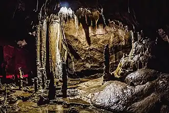 Auf der untersten der vier Höhlen-Ebenen fließt der „Blaue Fluss“. Es gibt viele Felsformationen: Stalaktiten, Stalagmiten und andere. Das Mikroklima in der Höhle ist stabil: Die Temperatur liegt das ganze Jahr über bei 8,8 °C und die Luftfeuchtigkeit bei über 90 %.[1]