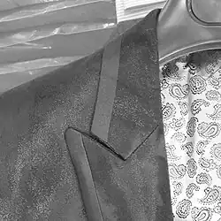 Trottoir wird in der Schneiderei ein schmaler Randstreifen an Revers oder Taschen eines Herrenanzugs genannt. Trottoirs finden sich auch an Mänteln, Kragen oder Ärmelaufschlägen. Diese heute im Alltag nicht mehr übliche Randverzierung findet sich bei festlichen Hochzeitsanzügen und war um 1900 populär (Edwardian Style).[1]