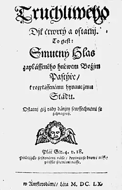 - ↑ Stimme der Trauer von J. A. Comenius. Aus dem Böhmischen übersetzt von Franz Slaměník. In: Monatshefte der Comenius-Gesellschaft XVII, Jena 1908, S. 124.