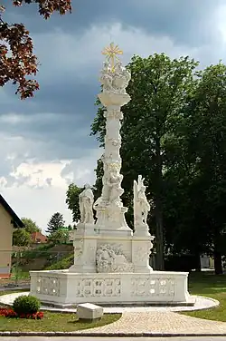 - Pestsäule Trumau: Die Pest-/Dreifaltigkeitssäule, errichtet zwischen 1720 und 1730, stand ursprünglich an der Hauptkreuzung der Gemeinde neben dem Glockenturm. Im Zuge einer Renovierung wurde sie 2007 rund 200 m entfernt beim Pfarramt aufgestellt.