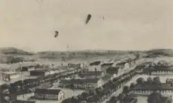 Am 2. Januar 1874 verkaufte die Gemeinde Griesheim rund 380 ha[4] des Sanddünengebietes an das Preußische Kriegsministerium zur Nutzung als Schießplatz für die 11. Artilleriebrigade. Durchschnittlich 20.000 Soldaten übten jährlich im Griesheimer Sand. Am 24. September 1877 besuchte Kaiser Wilhelm I. ein Manöver in Griesheim. Es entstanden im Norden des Platzes Stabs- und Offiziersgebäude, die heute teilweise noch erhalten sind, und als Mannschaftsunterkünfte weitläufige Wellblechbaracken, weshalb das Lager im Volksmund Wellblechhausen hieß.[5] Der Truppenübungsplatz vor den Toren Darmstadts, der damaligen Hauptstadt des Großherzogtums Hessen, war ab 1886 unter anderem auch mit der Darmstädter Dampf-Straßenbahn und einem Gleisanschluss für eine Versorgungsbahn erreichbar.