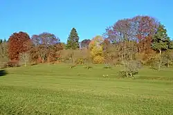 Im Truppenübungsplatz befindet sich die sagenumwobene Dreibannmarke, auch Dreibanmarke genannt, eine Nachbildung eines Grenzsteins aus dem Jahre 1604, der heute die Grenze zwischen den Marken dreier Gemeinden, früher der drei Länder Württemberg, Baden und Hohenzollern, kennzeichnete.[41] Der originale Grenzstein befindet sich heute in der Militärhistorischen Sammlung Stetten am kalten Markt.[42]