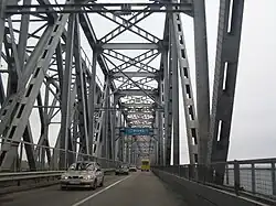 Die Brücke hat 10 Öffnungen über dem Stausee und je eine kurze Öffnung über dem Hang des Damms. Sie hat auf gemeinsamen Pfeilern getrennte Überbauten für das Gleis und die zweispurige Straße, die jeweils aus 110 m langen parallelgurtigen Fachwerkträgern bestehen. An der Südseite der Straßenbrücke ist außen ein schmaler Fußgängersteg angebracht.[1]
