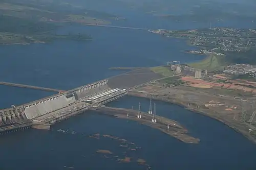 Bei Tucuruí wurde auch das mit einer Leistung von 8370 MW zweitgrößte Wasserkraftwerk Brasiliens am Rio Tocantins erbaut. Der Staudamm wurde als Gewichtsstaumauer errichtet.[5] In einer ersten Stufe wurde bis Ende 1992 ein Maschinenhaus mit 12 Generatoren (jeweils 350 MW Leistung) sowie 2 Hilfsgeneratoren mit 22,5 MW installiert. Ab Juni 1998 wurde dann in einer zweiten Phase bis April 2007 ein weiteres Maschinenhaus mit zusätzlichen 11 Generatoren (jeweils 375 MW Leistung) errichtet.[6]