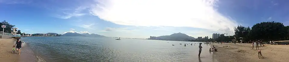 - ↑ Golden Beach (黃金泳灘 / 黄金泳滩, Huángjīn Yǒngtān, Jyutping Wong4gam1 Wing6taan1), eine Bucht in den New Territories.