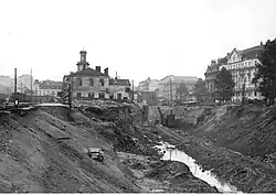 Im Jahr 1884 stellten die Ingenieure Stanisław Rohn und Stefan Zieliński ein erstes Tunnelprojekt unter der Aleje Jerozolimskie vor, der Teil einer Verbindungsstrecke zwischen den damaligen Bahnhöfen Dworzec Terespolski im Osten und Dworzec Wiedeński im Westen der Weichsel sein sollte. Die Idee konnte sich nicht durchsetzen. Eine 1898 eingerichtete Kommission unter Ferdynand Rydzewski[3] zur Entwicklung eines Konzeptes für einen neuen Hauptbahnhof (Dworzec Główny) mit der Schaffung eines Eisenbahnknotens in der Stadtmitte nahm den Vorschlag der Untertunnelung der Al. Jerozolimskie erneut auf. 1903 wurde dem russischen Eisenbahnministerium ein Entwurf zur Genehmigung vorgelegt, konnte wegen fehlender Mittel aber nicht umgesetzt werden. Erst 1913 wurde die Baugenehmigung erteilt; der Ausbruch des Ersten Weltkriegs unterbrach jedoch alle Arbeiten. Im Juli 1919 verabschiedete der polnische Sejm einen Beschluss zum Bau der Linia Średnicowy, der neben der Errichtung einer Weichselbrücke (Most Średnicowy) auch die Anlage des Innenstadttunnels umfasste. Ein neuer Entwurf wurde 1921 genehmigt und der Bau begann drei Jahre später. Die feierliche Eröffnung des Tunnels fand am 2. September 1933 statt.[3] Zunächst wurden dampfgetriebene Lokomotiven eingesetzt, die allerdings zu einer problematischen Rauchentwicklung im Tunnel führten; am 15. Dezember 1936 konnte nach erfolgter Elektrifizierung der Strecke auch der erste elektrisch angetriebene Zug den Tunnel befahren.
