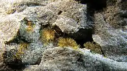 - ↑ a b Bild blaugrünen Tuperssuatsiait-Büscheln aus den Aris Steinbrüchen, Aris, Windhoek Rural, Region Khomas, Namibia. In: mindat.org. Hudson Institute of Mineralogy, abgerufen am 6. Januar 2021 (englisch).
