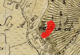 Lageplan des Turmhügels Abraham auf dem Urkataster von Bayern | ||