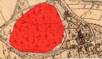 Lageplan des Turmhügels Grubach auf dem Urkataster von Bayern | ||