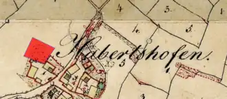 Lageplan des Turmhügels Habertshofen auf dem Urkataster von Bayern | ||