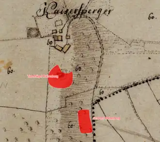 ![]() Lageplan von Turmhügel und Schloss Kaisersberg auf dem Urkataster von Bayern | |