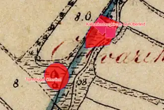 Lageplan des Turmhügels Oberlind auf dem Urkataster von Bayern