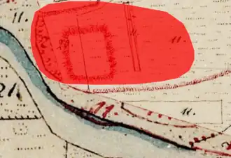 Lageplan des Turmhügels Schmiedorf auf dem Urkataster von Bayern | |