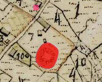 ![]() Lageplan von Turmhügel Seysdorf auf dem Urkataster von Bayern | ||
