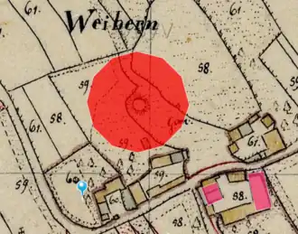 Lageplan des Turmhügel Turmhügel Weiher (Marklkofen) auf dem Urkataster von Bayern | |