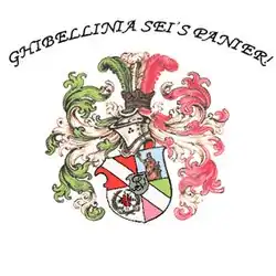 Name und Farben: Der Name „Ghibellinia“ nimmt auf die Reichspolitik der mittelalterlichen Staufer aus der Perspektive der Zeit nach der deutschen Nationalstaatsgründung 1871 Bezug. Die modernen „Ghibellinen“ sahen als Anhänger des kleindeutschen Kaisertums und vor dem Hintergrund des „Kulturkampfes“ in den gleichnamigen mittelalterlichen Parteigängern der Staufer in Italien, welche gegen die papistischen Guelfen opponierten, ihre historischen Vorläufer. Als Reminiszenz an den italienischen Schauplatz dieser Parteikämpfe und wohl auch der Entstehung des italienischen Nationalstaats, die Parallelen mit der deutschen Reichsgründung aufweist, wählte man eine Variante der italienischen Trikolore, Moosgrün – Weiß – Rosa[3], als Farben des neuen Ghibellinenbundes.