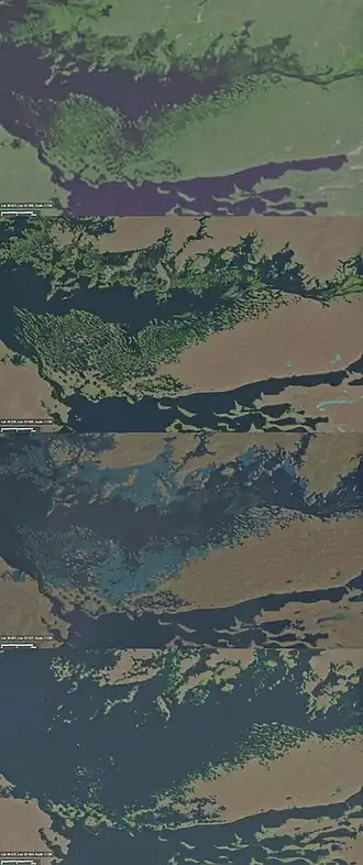 | Fläche | ursprünglich ca. 30 km², heute bis zu 705 km² (2011) | |