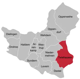 Am 1. April 1936 wurde Twiehausen aus der Gemeinde Destel ausgegliedert und zu einer eigenen Gemeinde im Amt Levern.[4]