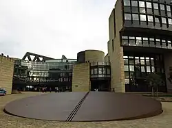 Durch den Kreis, die geometrische Grundform der Skulptur, bezog er sich formal auf die Architektur des Landtagsgebäudes, die ein strukturalistisches Spiel mit Kreisformen darstellt. Die Grundform des Kreises, die sich als Avantgarde nachfolgender Parlamentsbauten in Deutschland (etwa in der kreisförmigen Anordnung der Sitze im neuen Plenarsaal des Bonner Bundestages) im Plenarsaal des Landtags findet, wird als Symbol der Demokratie verstanden. Die in der Mitte der Scheibe verlaufende Spalte oder Rinne, die durch die Bahnschienen markiert wird, bildet in diesem Bedeutungszusammenhang die mathematische Linie, auf der parlamentarische Entscheidungen durch Mehrheiten entstehen. Die Schräglage der Scheibe, die an einen Kipp- und Drehmechanismus wie dem eines kardanisch aufgehängten Schiffskompasses denken lässt, kann in diesem Zusammenhang als Verweis auf die politische Dynamik und Sensibilität eines demokratischen Systems verstanden werden.