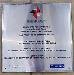 - ↑ a b c d e f g h i Tiago Carvalho Oakley: Arquitetura das estações de conexão na rede de metrô de São Paulo. Faculdade de Arquitetura e Urbanismo da Universidade de São Paulo, São Paulo 2017, S. 121 ff. (usp.br [PDF; 25,3 MB; abgerufen am 1. Juni 2025]).