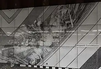 Der Innenbereich des Bahnhofs wurde in Erinnerung an die namengebende Zeche Consolidation von Alfred Schmidt gestaltet. Dabei ist das Deckengewölbe dem eines Stollens nachempfunden, während die Wände den Verlauf der Flöze darstellen.[1] An einem Bahnsteigende sind zwei Hunte auf Schienen aufgestellt.