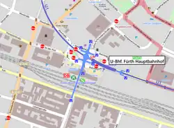 In der Umgebung des Bahnhofs befindet sich der Fürther Hauptbahnhof, die Comödie Fürth, die Fürther Freiheit und der Stadtpark.