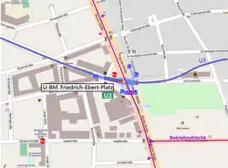Der U-Bahnhof Friedrich-Ebert-Platz (Kurzbezeichnung des Betreibers: FE) ist ein Bahnhof der U-Bahn Nürnberg und wurde am 10. Dezember 2011 eröffnet.[2] Er ist 553 Meter vom U-Bahnhof Kaulbachplatz und 534 m vom U-Bahnhof Klinikum Nord entfernt und wird von der Linie U3 bedient. Täglich wird er von rund 13.200 Personen (Mo–Fr, 2019) frequentiert, was rund fünf Millionen Fahrgästen im Jahr entspricht.[1]