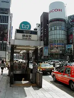 ![]() Eingang zum Bahnhof Ginza am Übergang zum Sanai-Hochhaus