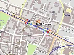 Der Bahnhof wird von der U-Bahn-Linie U1 bedient. An den Bahnhofsenden befinden sich mit Gostenhof Ost und Gostenhof West zwei Haltestellen der Stadtbuslinie 34. An den Wochenenden und vor Feiertagen verkehren auch die Nachtbuslinien N9 und N14.