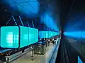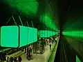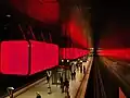 An Wochenenden und Feiertagen werden zwischen 10 und 18 Uhr jeweils zur vollen Stunde Licht- und Musikkompositionen im U-Bahnhof aufgeführt. Passend zu klassischer Musik, die aus betrieblichen Gründen nur im Zwischengeschoss abgespielt wird, wechseln die Leuchtcontainer ihre Farbe.[9] Außerhalb dieser Zeiten finden konstante, langsame Farbübergänge statt.