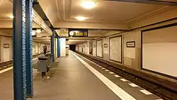 Von April bis Juni 1945 war der Bahnhof aufgrund von Kriegsschäden durch alliierte Luftangriffe geschlossen. Vom 13. August 1961 bis zum 1. Juli 1990 war er ein sogenannter „Geisterbahnhof“, die U-Bahn hielt nur am Bahnhof Friedrichstraße.[2] In den Folgejahren ließ die BVG, finanziert durch das Land Berlin, den Bund und die EU, den Ursprungszustand wiederherstellen und gleichzeitig die Bahnsteige von 80 auf 110 Meter verlängern, sodass auch 6-Wagen-Züge am Bahnsteig halten konnten.