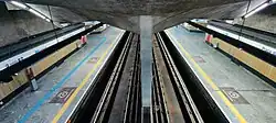 Die Architekten Marcello Accioly Fragelli, Vasco de Melo und João Batista Martinez Corrêa waren für die Planung des U-Bahnhofes verantwortlich,[4] architektonisch dominiert der für die Zeit übliche Sichtbeton den Bahnhof. Während der Ausführungsplanung des Bahnhofs stellte sich heraus, dass der Grundwasserspiegel deutlich höher lag als zunächst angenommen, was umfangreiche Anpassungen an der baulichen Konzeption erforderlich machte. Der ursprüngliche Entwurf musste überarbeitet werden, um dem hohen Auftrieb entgegenzuwirken, der die Struktur sonst an die Oberfläche gedrückt hätte. Die neue architektonische Lösung sah eine möglichst kompakte Bauweise mit niedriger Decke und enger räumlicher Verbindung zwischen Zwischengeschoss, den beiden Seitenbahnsteigen und den Treppen vor.[5]