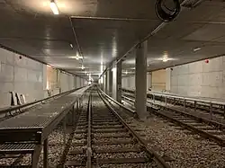 Während die sich anschließende Tunnelstrecke bereits seit Frühjahr 2012 realisiert wurde,[3] begannen die Bauarbeiten für den Bahnhof Anfang 2013.