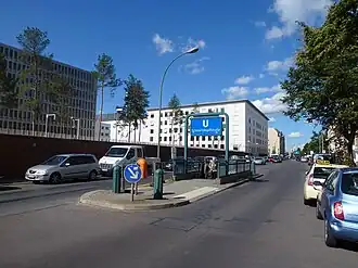 Der Bau begann 1913/1914 und wurde im Ersten Weltkrieg eingestellt. Nach Wiederaufnahme der Arbeiten 1919 konnte die Station an der damaligen Nord-Süd-Bahn (1928–1966 Linie C, heute: U6) am 8. März 1923 eröffnet werden. Heinrich Jennen, Alfred Grenander und Alfred Fehse entwarfen einen in weiß gehaltenen Bahnhof mit Mittelbahnsteig. Die Stationsschilder tragen eine rote Umrandung. Bei der BVG wird er unter dem Kürzel Sk geführt.[1]