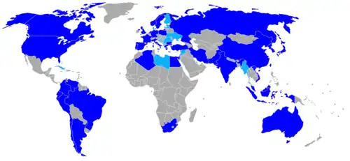 Aktuelle (dunkelblau) und ehemalige (hellblaue) Betreiberstaaten militärischer U-Boote