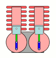 - ↑ Ein U-Kolbenmotor ist hingegen ein Motor, in dem zwei Arbeitszylinder einen gemeinsamen Brennraum haben.