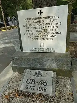 Im Rahmen des ersten Besuches des deutschen Kreuzers Emden in Warna vom 28. Oktober bis 1. November 1936 legte deren Kommandant Kapitän zur See Walter Lohmann am 29. Oktober 1936 Ehrenkränze vor das Denkmal der Grenzschützer im Seegarten von Warna und vor das Grab der toten deutschen Seeleute von UB 45 nieder.[6]