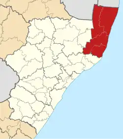Der Distrikt liegt im Nordosten der Provinz KwaZulu-Natal und grenzt mit seinen nördlichen Arealen an die Nachbarstaaten Eswatini und Mosambik. Am östlichen Rand erstreckt sich die Küste zum Indischen Ozean. Im Westen schließen sich der Distrikt Zululand und im Süden King Cetshwayo an.[2]