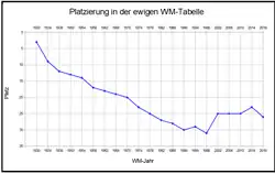 Platzierung der US-amerikanischen Mannschaft in der ewigen WM-Tabelle