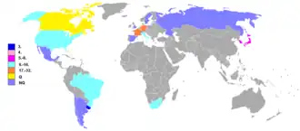 • Teilnahme ohne Qualifikation (u. a. als Gastgeber): 2× (9 %; 1930 und 1994)